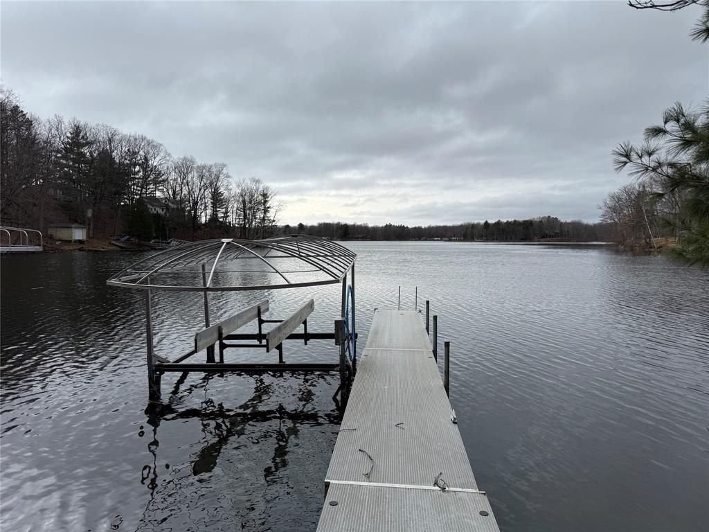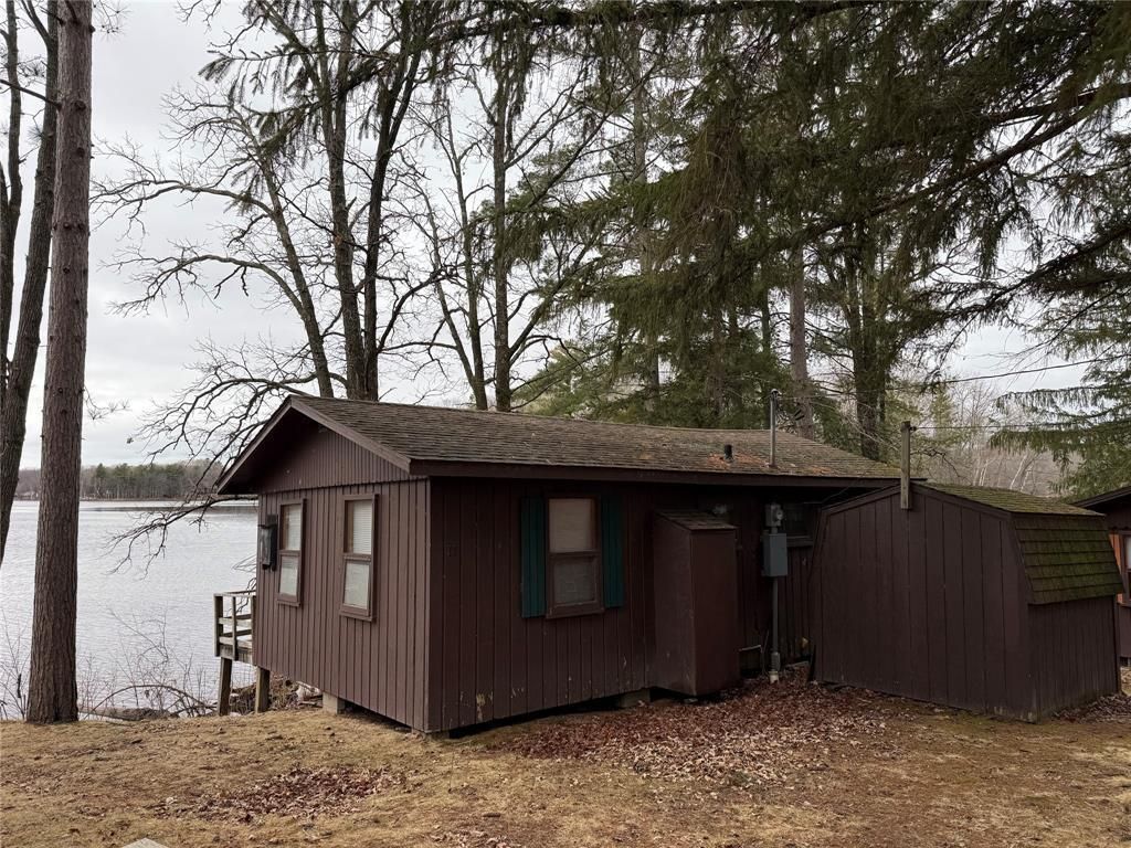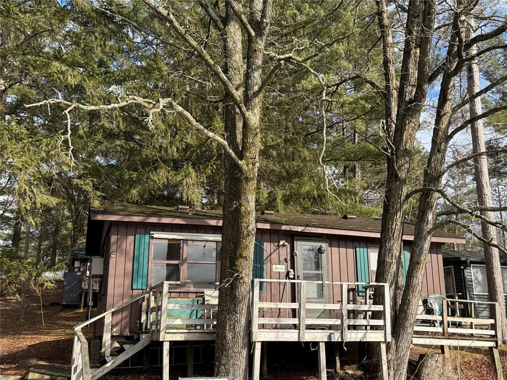 Beautifully remodeled lake cabin on the Birch/Chetac Chain! This 2-bedroom, 1-bath retreat offers low-maintenance living with gorgeous lake views. The open-concept layout features vaulted knotty pine ceilings and free flowing living area. Enjoy stunning sunsets from the lakeside deck or take an easy stroll to the newer dock (2023). The property includes a dedicated parking spot plus additional guest parking, along with a garden shed for storage. A part of the Birch Lakes Condo Association the fees include; electric, cable, shared well and septic system, lawn care, tree removal, and more. The Birch/Chetac Chain is a recreational hotspot with five boat-up bars and restaurants, live weekend music, a popular sandbar, and some of the area's best fishing. Outdoor enthusiasts will love the ATV and snowmobile trails just a few hundred yards away. Sold turn-key.