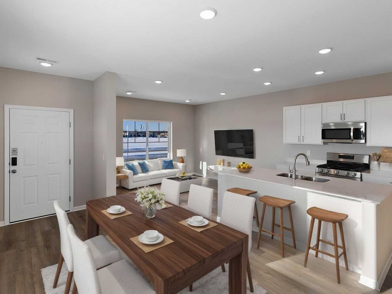 Enjoy walkable living near The Draw Park & Amphitheater, North Commons Park, trails, dining, shopping, and the Metro Transit station at The COR?making commuting and weekend plans easy. Located in Waterfront Village, this pet-friendly community offers miles of trails right outside your door plus association-covered lawn care and snow removal for low-maintenance living.The Elmcrest floor plan features 3 bedrooms, 3 bathrooms, and bright open-concept living with 9-foot ceilings and luxury vinyl plank flooring. The kitchen includes an oversized quartz island, white cabinetry, and stainless steel appliances. The private owner's suite offers a walk-in closet and ensuite bath, with additional bedrooms ideal for work, guests, or hobbies.***Ask about Flex Cash Promotion of up to $5,000 + 1% of the purchase price as a lender credit with preferred lender & title company with a closing by 4/31/2026.