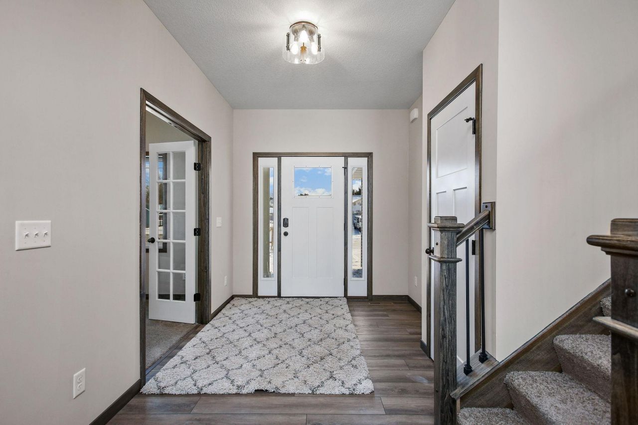 Welcome to the Denali II by local builder Dane Allen Homes, located in the beautiful Nadeau Acres development in Lino Lakes within the highly sought-after Centennial School District. This thoughtfully designed new construction home features 4 spacious bedrooms on the upper level, 3 bathrooms, and a 3-car garage, offering both functionality and modern style. The stunning kitchen is a true centerpiece, showcasing white enameled custom perimeter cabinetry, a contrasting stained center island, quartz countertops, stainless steel appliances, and a generous walk-in pantry?perfect for everyday living and entertaining. The inviting living room features a stone gas fireplace with a custom mantel and an eye-catching soffit box ceiling detail, adding architectural charm and warmth to the space. Just off the main entry, a versatile main-floor office/den provides the ideal space for working from home or a quiet retreat. Practical design continues with a convenient walk-through closet near the front entry, leading to a well-appointed mudroom complete with built-in cubbies to keep everything organized. Upstairs, the spacious owner's suite offers a walk-in closet, elegant racetrack ceiling detail, and ceiling fan. The private bath includes dual sinks and a beautifully finished fully custom tiled shower with glass door. The upper-level main bath also features dual sinks and a pocket door for added functionality and privacy.Best of all ? No Association Dues!Experience quality craftsmanship, modern finishes, and a prime location in one of Lino Lakes' premier communities.