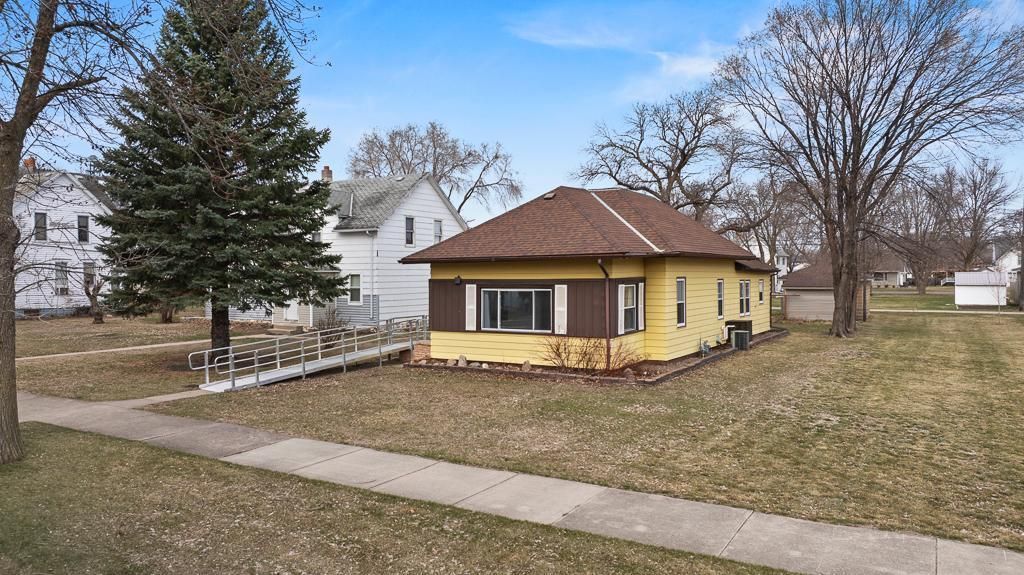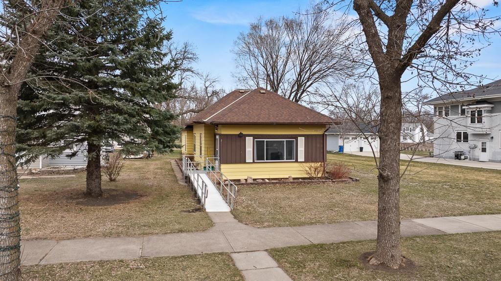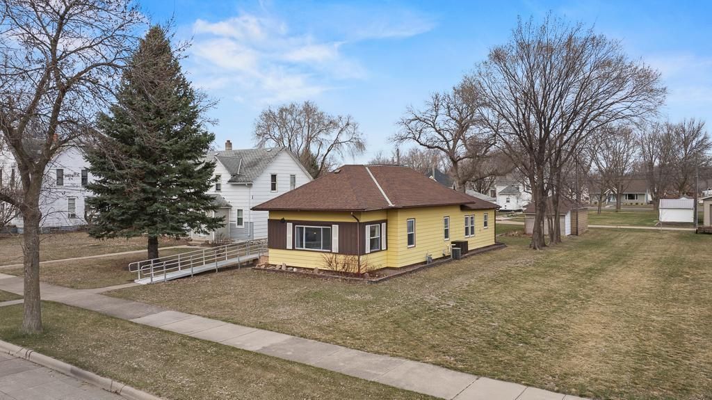 How often do you stumble across: Move-In Ready, Single-Level Living, Affordable & Low Maintenance! Enjoy simple, stress-free living in this well-maintained, move-in ready home in Canby. Designed for ease and accessibility, this property offers true single-level living with thoughtful updates throughout. The exterior features durable steel siding, an updated roof, and a wheelchair-accessible ramp for convenient front entry. The enclosed front porch is fully insulated with updated windows, creating the perfect space to enjoy your morning coffee or unwind with a good book year-round. Step inside to find a welcoming open-concept living and dining area, highlighted by beautiful original woodwork and a stunning front door that adds character and charm. Just off the living room, a versatile space with French doors offers flexibility for a home office, bedroom, or hobby room. The main floor includes two additional bedrooms, including a primary suite with a ¾ bathroom and walk-in closet. A second bedroom offers a comfortable layout and ample storage. The kitchen is clean, functional, and ready to go, featuring updated appliances and plenty of cabinet space. Convenience continues with a full main-floor bathroom that also includes washer and dryer, making daily living as efficient as possible. The basement provides excellent storage and mechanical updates, including a newer water heater, some updated PVC plumbing, circuit breaker electrical panel, forced air heat furnace, and a radon mitigation system already installed (ready for final electrical hookup). Outside, you'll find a one-stall detached garage ideal for parking or additional storage. If you're looking for an affordable, low-maintenance home with everything you need on one level, this is an opportunity you won't want to miss.
