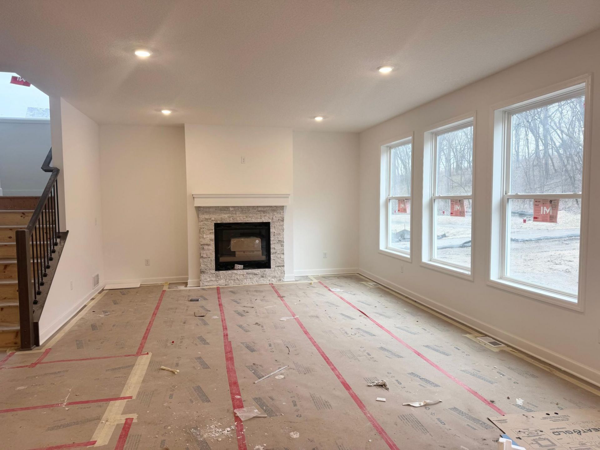 This home is available for a May closing date! Welcome to the Arbor Bluff Landmark Collection, Shakopee's newest community, celebrated for its stunning natural beauty. The Sinclair floor plan is a perfect blend of elegance and comfort, featuring 4 bedrooms and 2.5 bathrooms. The main level shines with a gourmet kitchen showcasing white cabinetry, quartz countertops, stainless steel appliances, a walk-in pantry, and a chic quartz backsplash. The great room, anchored by a cozy gas stone fireplace, invites relaxation, while a versatile study adds practicality. Upstairs, the expansive primary suite offers a spa-inspired bathroom, complemented by a large laundry room and a walk-in linen closet for ultimate convenience. The unfinished basement provides future room to expand, making this home as functional as it is beautiful.