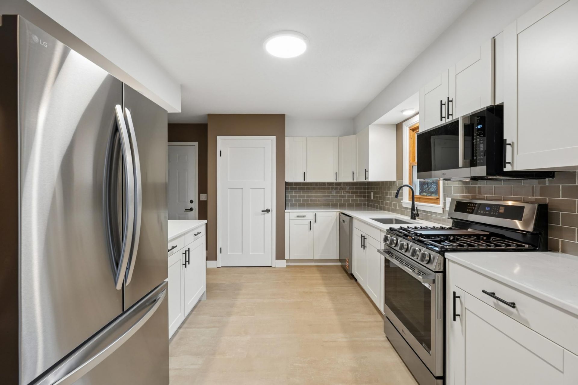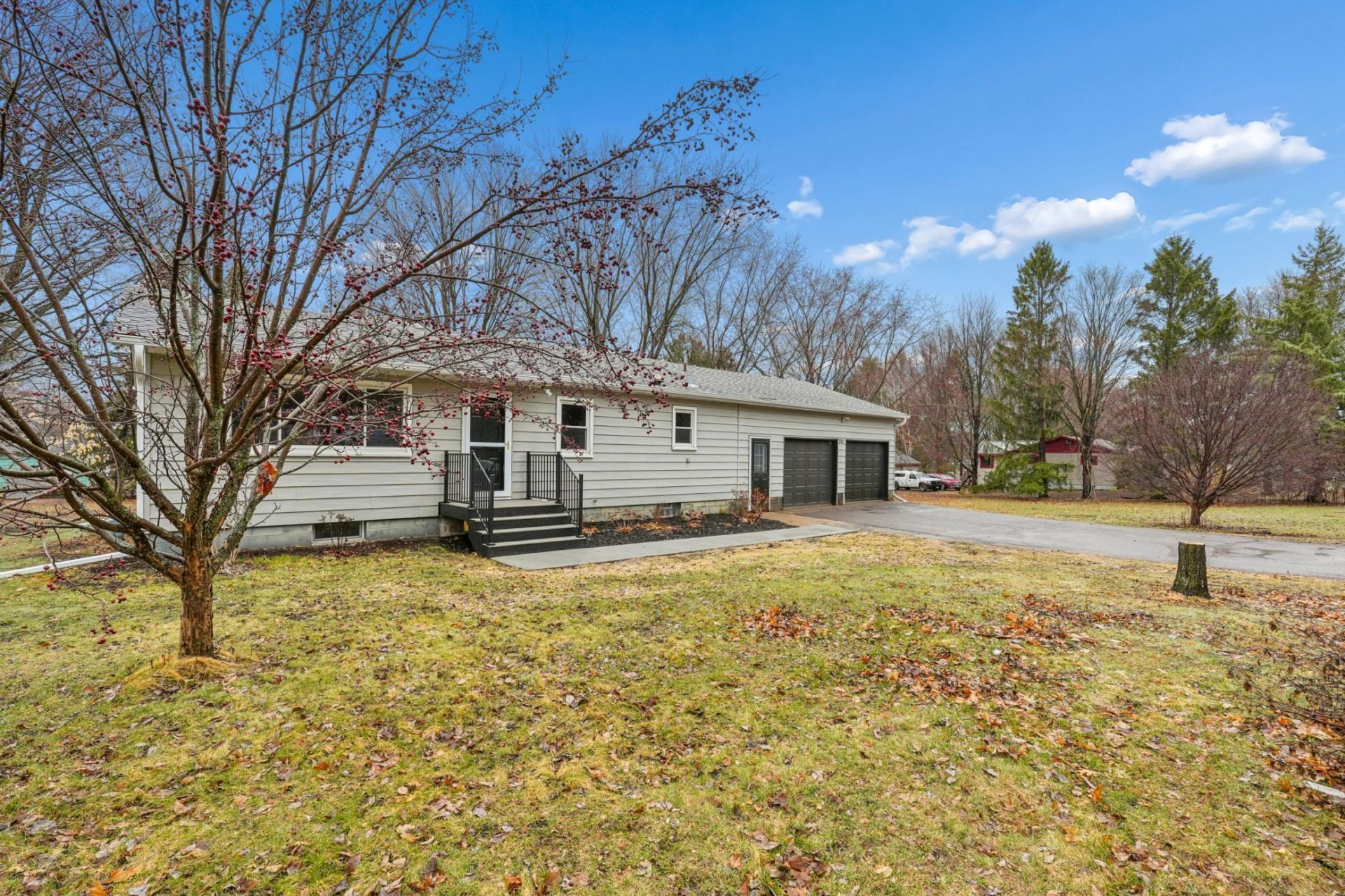 Beautifully remodeled one-story home set on a beautiful 0.42 acre lot. This move-in ready property blends classic charm with modern updates, featuring gorgeous refinished original hardwood floors & freshly painted interior through-out. The kitchen has been completely updated with stunning white cabinetry, added pantry storage, new flooring, stainless steel appliances, and updated fixtures. Enjoy the newly constructed maintenance free front porch and welcoming sidewalk entrance, along with all new landscaping that enhances the home's curb appeal. Additional updates include new gutters, new garage doors, updated 200-amp electrical service, a newer furnace (2019) natural gas water heater (2023).The lower level offers a clean, bright, and usable laundry area with washer and dryer included, plus ample space for storage or future finishing.Situated on nearly half an acre, this property offers space, updates, and comfort ready for its next owner to move in and enjoy