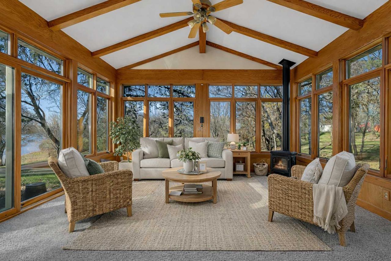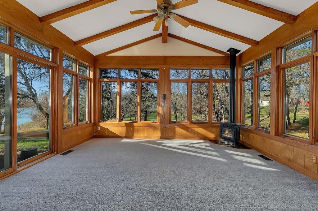 Enjoy the charm of country living while still being close to multiple lakes. This rambler style home sits on a spacious one acre lot near Point Lake. Step inside to an inviting open layout highlighted by a bright sunroom that showcases beautiful views of the expansive backyard and Point Lake. The main level offers generous living space with three bedrooms, including a primary suite featuring a walk in closet and private bathroom. The lower level provides a cozy family room, a bedroom, built in vanity and a large storage area with the potential to be finished into an additional bedroom or expanded living space. With recent updates including new carpet, fresh paint, and a new roof, adding to the home's appeal, this home is ready to be moved into.
