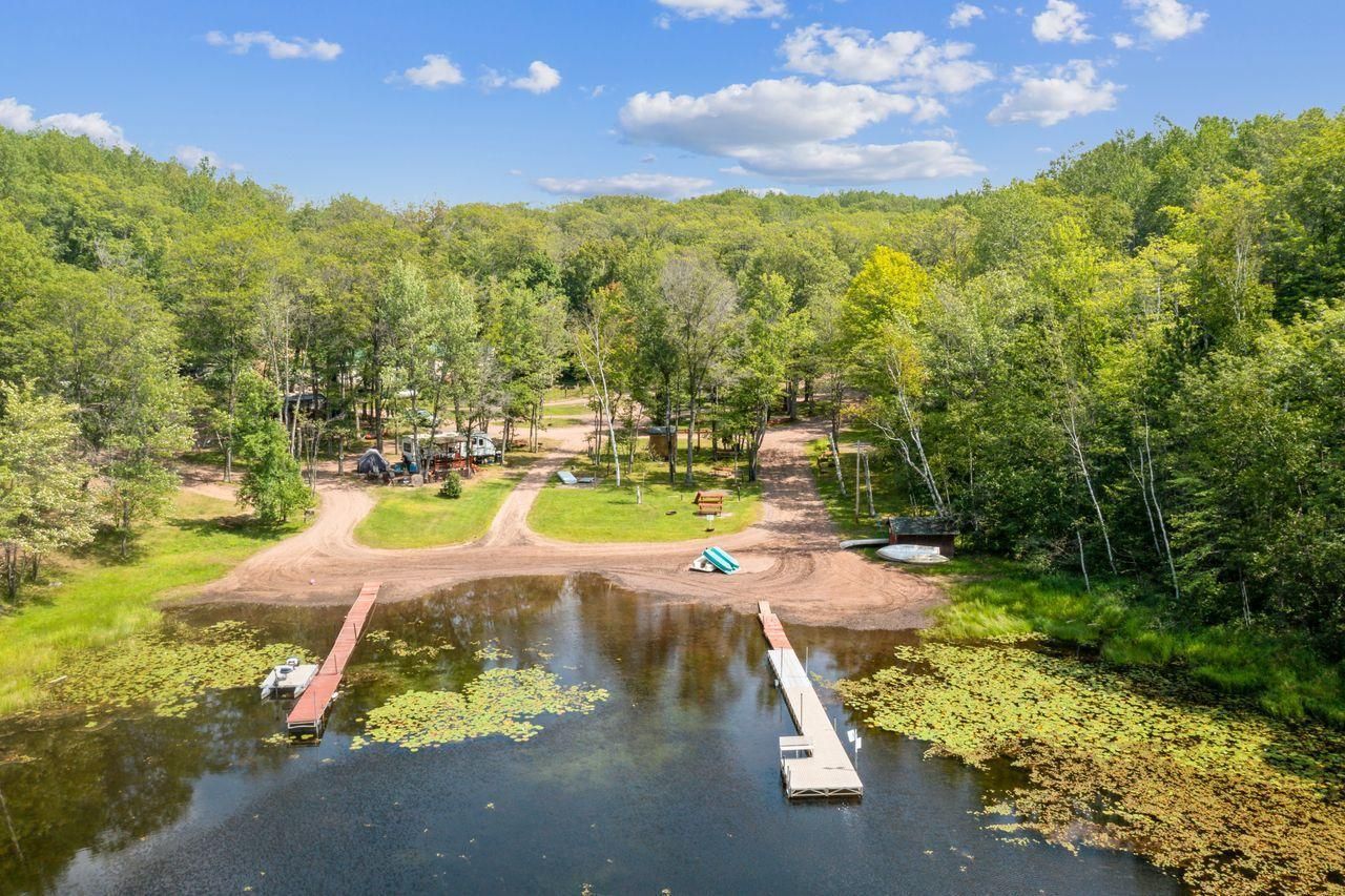 3 bedroom, 2 bath home on Peterson Lake. Have your own private piece of Northwoods paradise or have the option of continuing the Wildwood Campground. 25campsites with room to expand on the 10 acres. 18 sites have power and water; 5 sites has power water and sewer; 2 sites have no power or water. 2 separate conventional septic systems and 2 separate wells. Detached garage with workshop and additional pole building for equipment storage. Mens and Womens bath/shower facilities. Enjoy the fishing, ATV/UTV access to the Tri County Corridor.